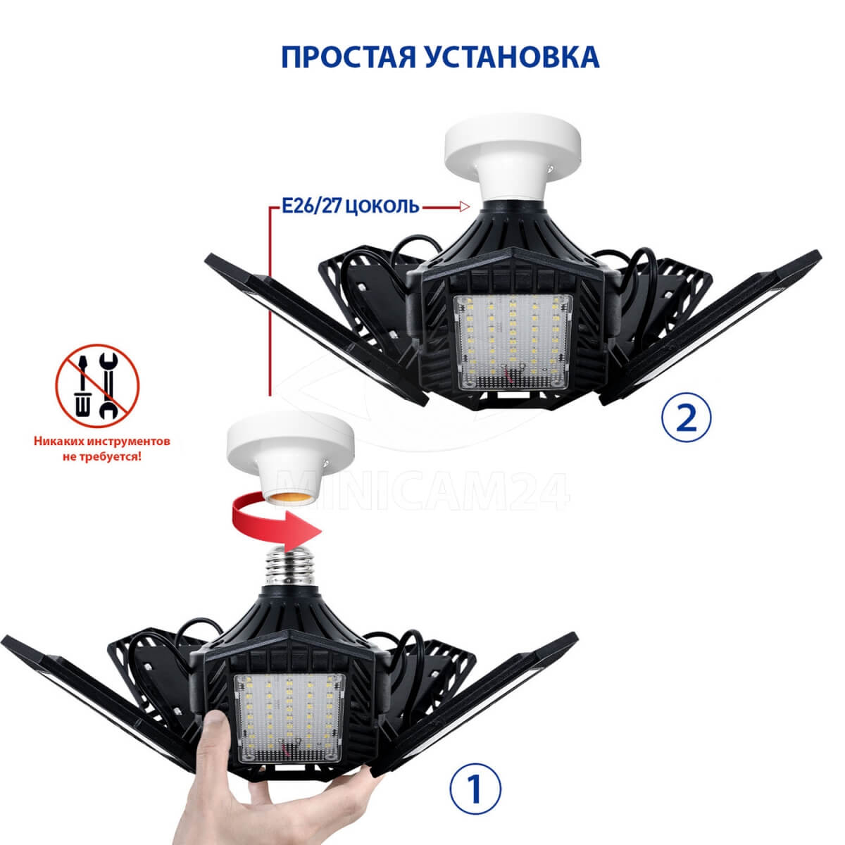 Ультраяркий светодиодный светильник с 5 регулируемыми панелями и высоким цоколем.